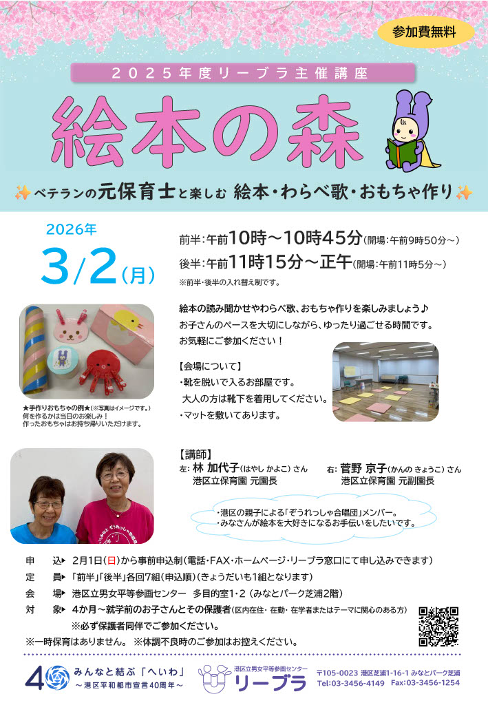 2月1日(日)から電話・FAX・ホームページ・リーブラ窓口にて申し込みできます。 |