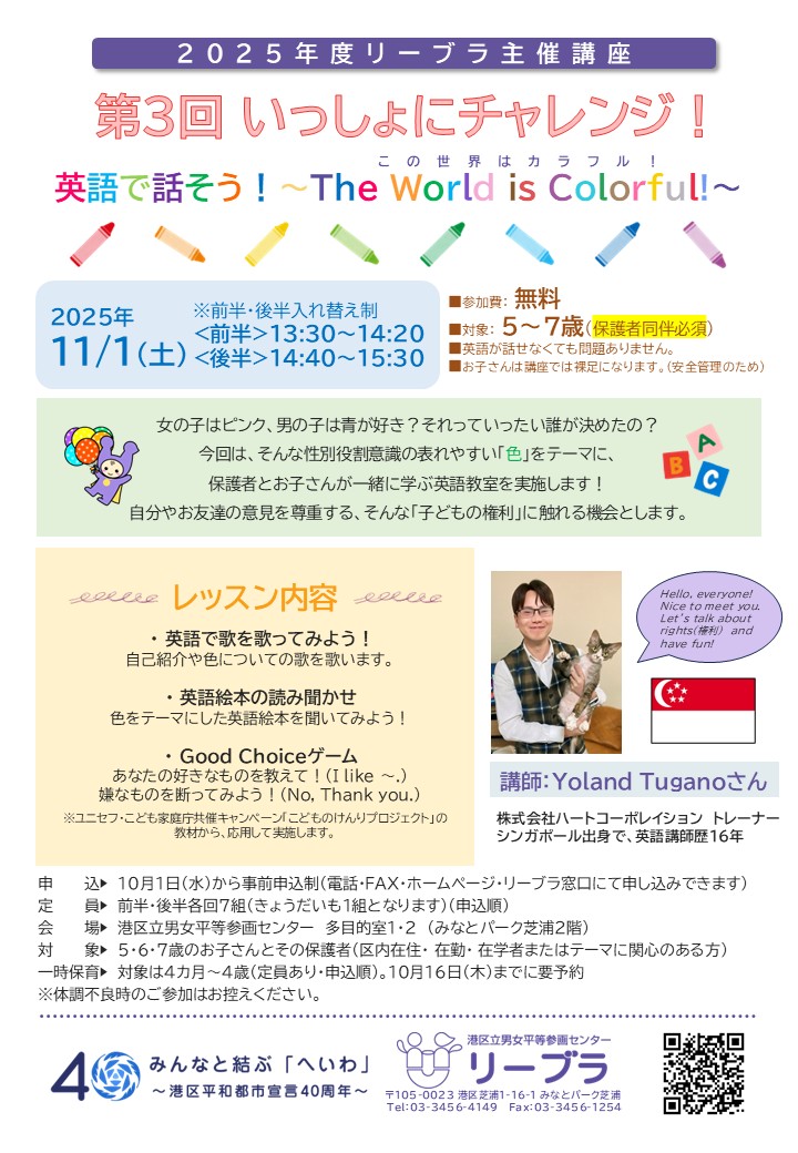 今回は、そんな性別役割意識の表れやすい「色」をテーマに、保護者とお子さんが一緒に学ぶ英語教室を実施します!