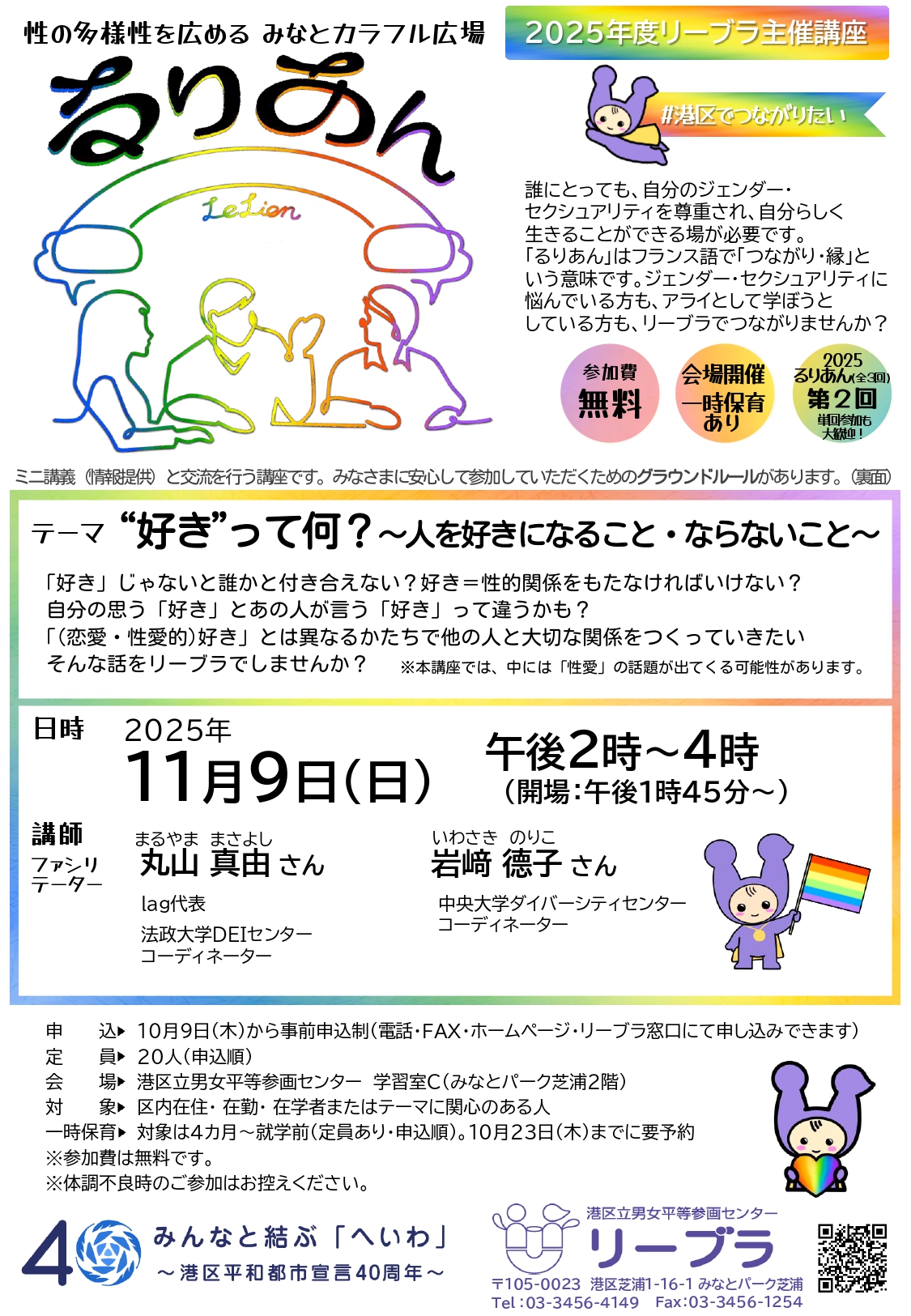 性の多様性を広める みなとカラフル広場【るりあん】「『好き』って何?~人を好きになること・ならないこと~」