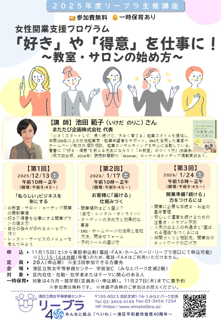 女性開業支援プログラム 「好き」や「得意」を仕事に!~教室・サロンの始め方~