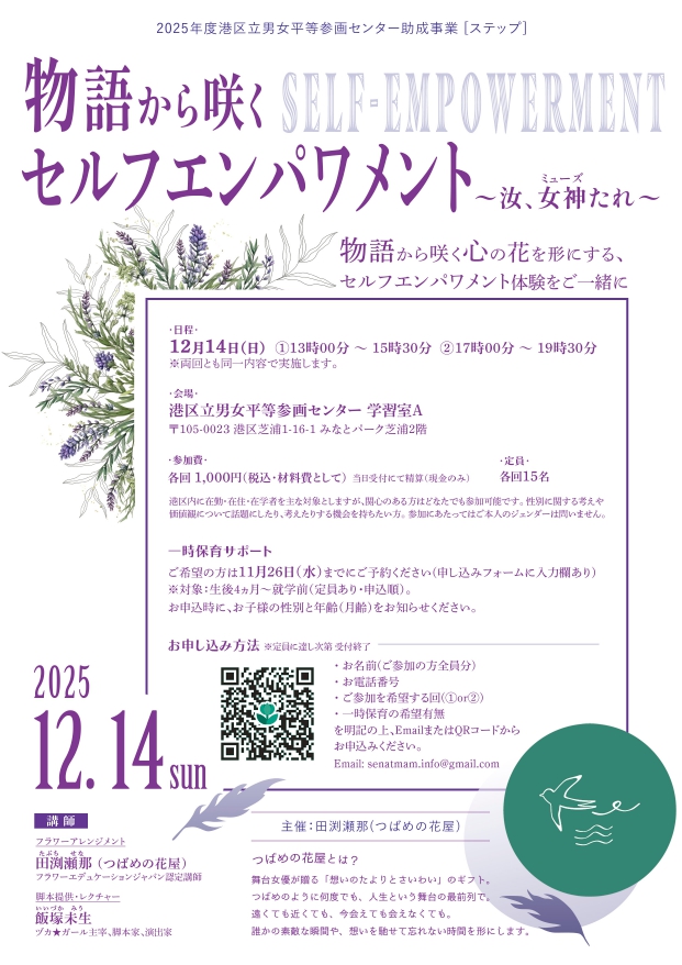 ★“物語から咲くセルフエンパワメント~汝、女神たれ~”は、2025年度港区立男女平等参画センター助成事業(ステップ)にて行う事業です。