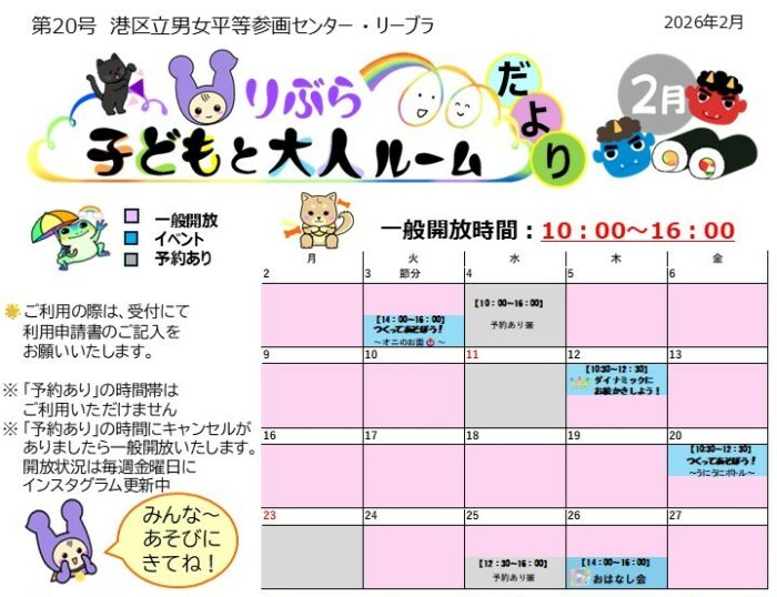 りぶら子どもと大人ルーム一般開放について【2月】