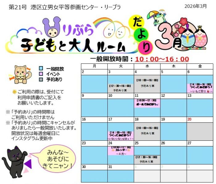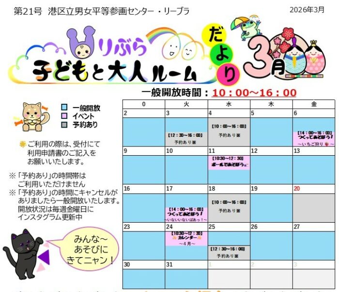 りぶら子どもと大人ルーム一般開放について【3月】
