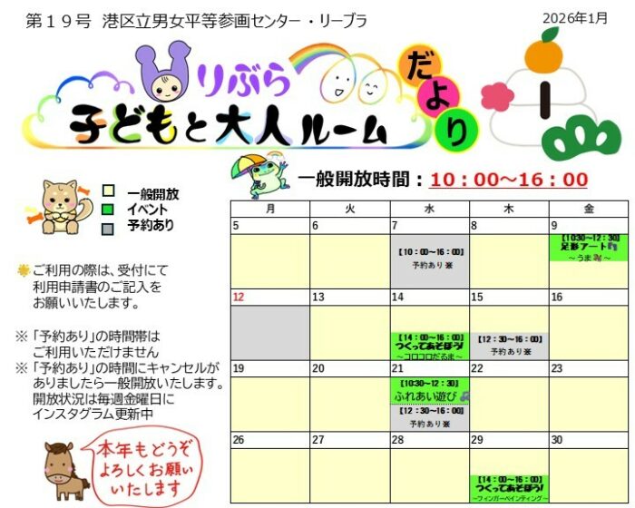 1月 りぶら子どもと大人ルーム イベントカレンダー
